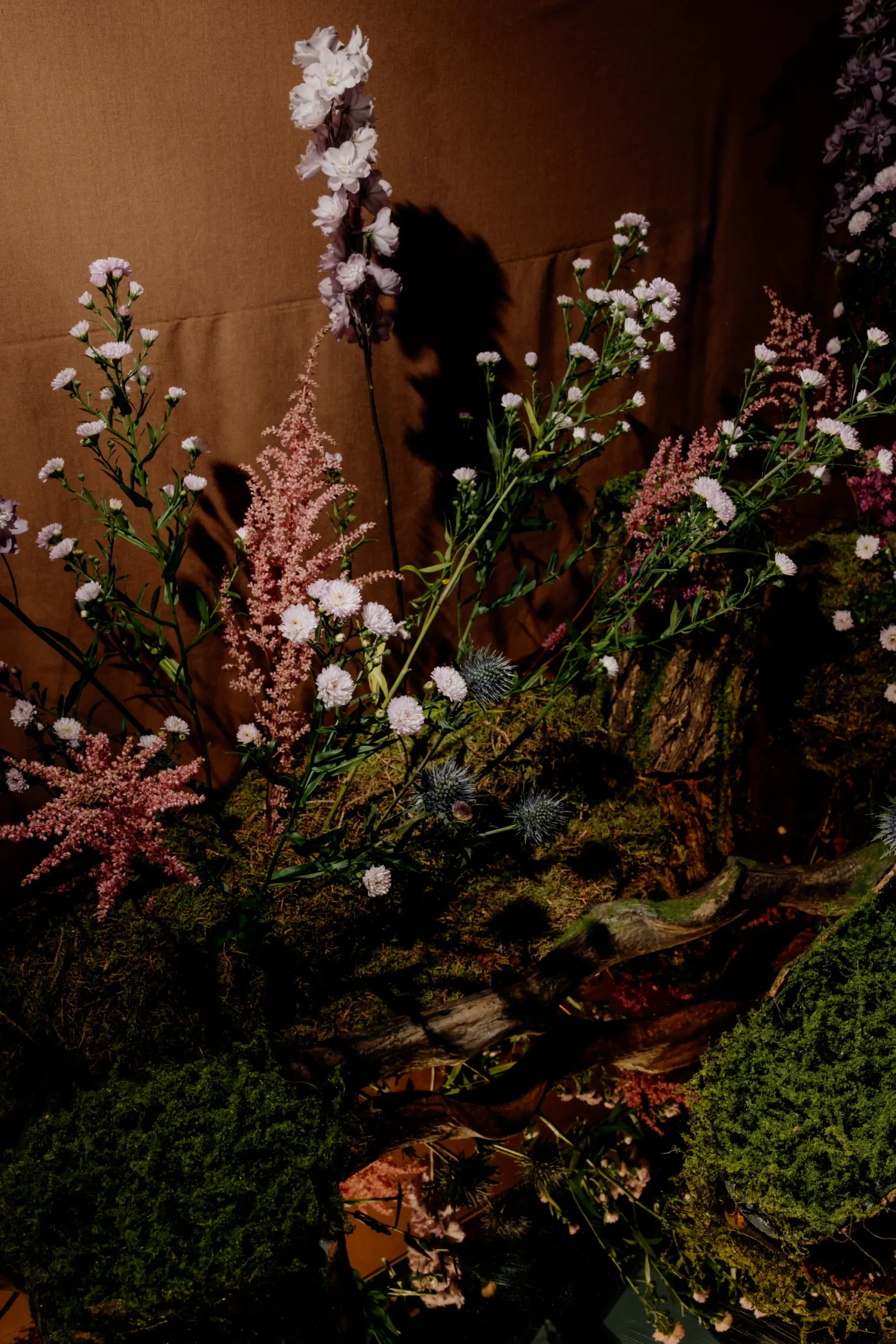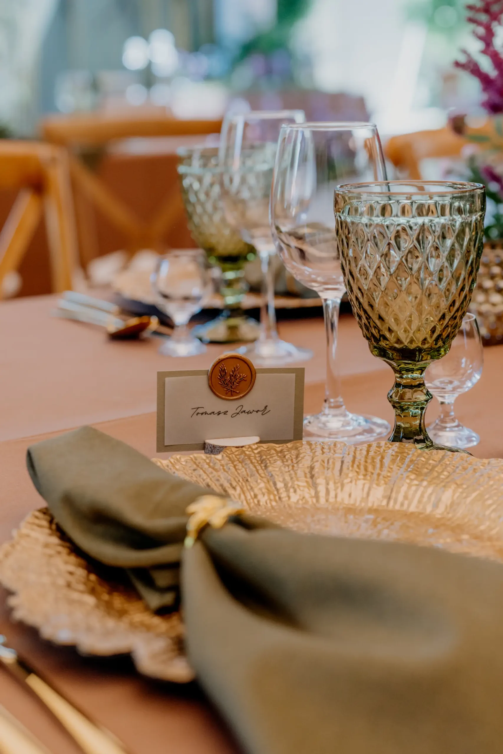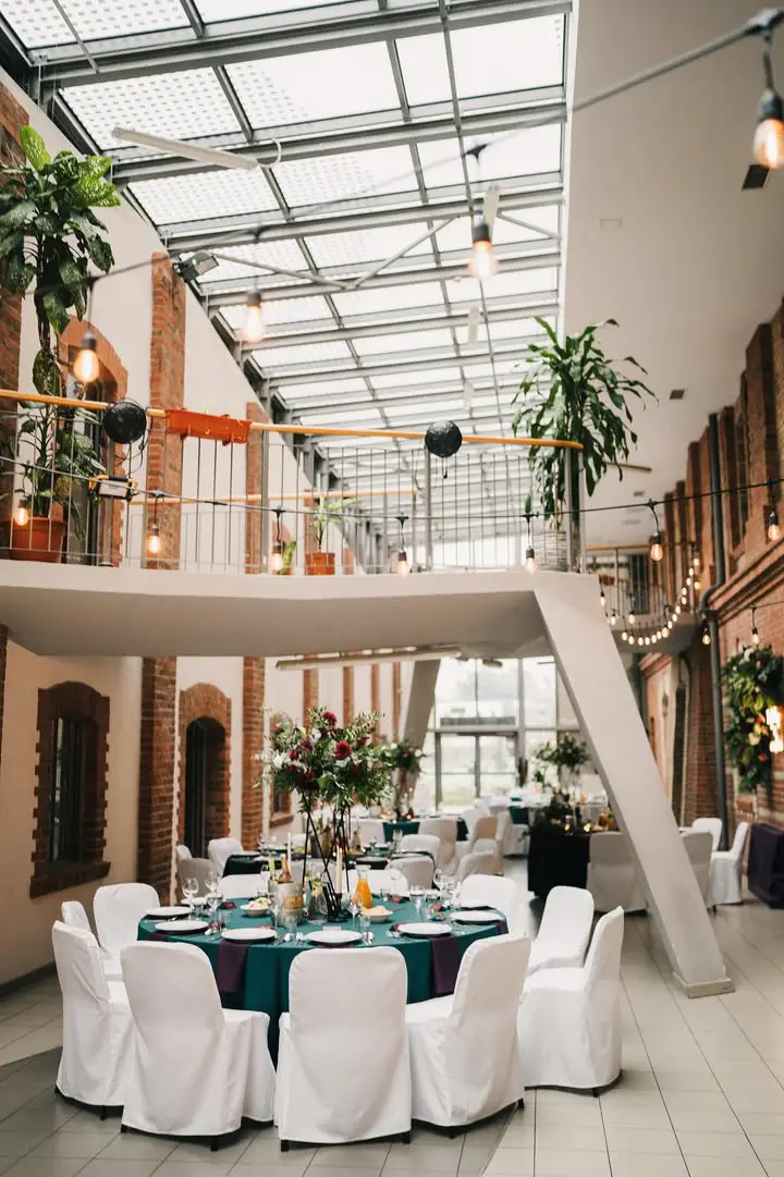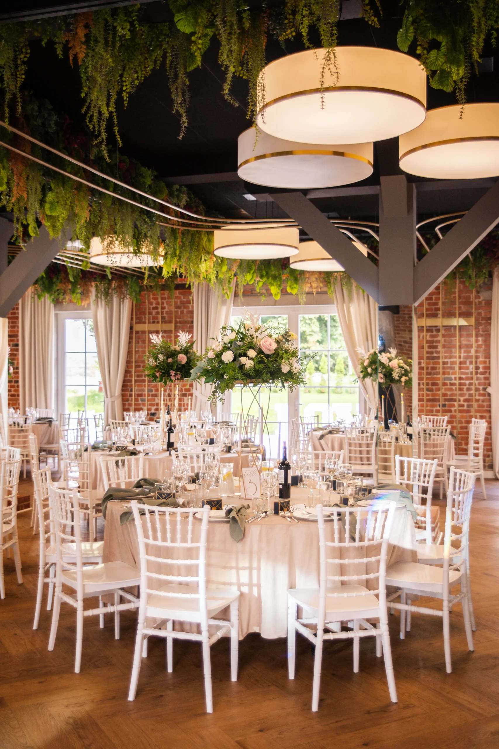 Natalia i Kuba to wyjątkowo kreatywna i artystyczna Para Młoda. Ich wesele w Młynie Smaków utrzymane było w jesiennej palecie zieleni i śliwki. Każdy stół otrzymał nieco inną aranżację kwiatową, co podkreśliło indywidualny charakter dekoracji. Jedne kompozycje swobodnie opadały, inne wznosiły się ku górze, tworząc dynamiczną i niepowtarzalną przestrzeń.