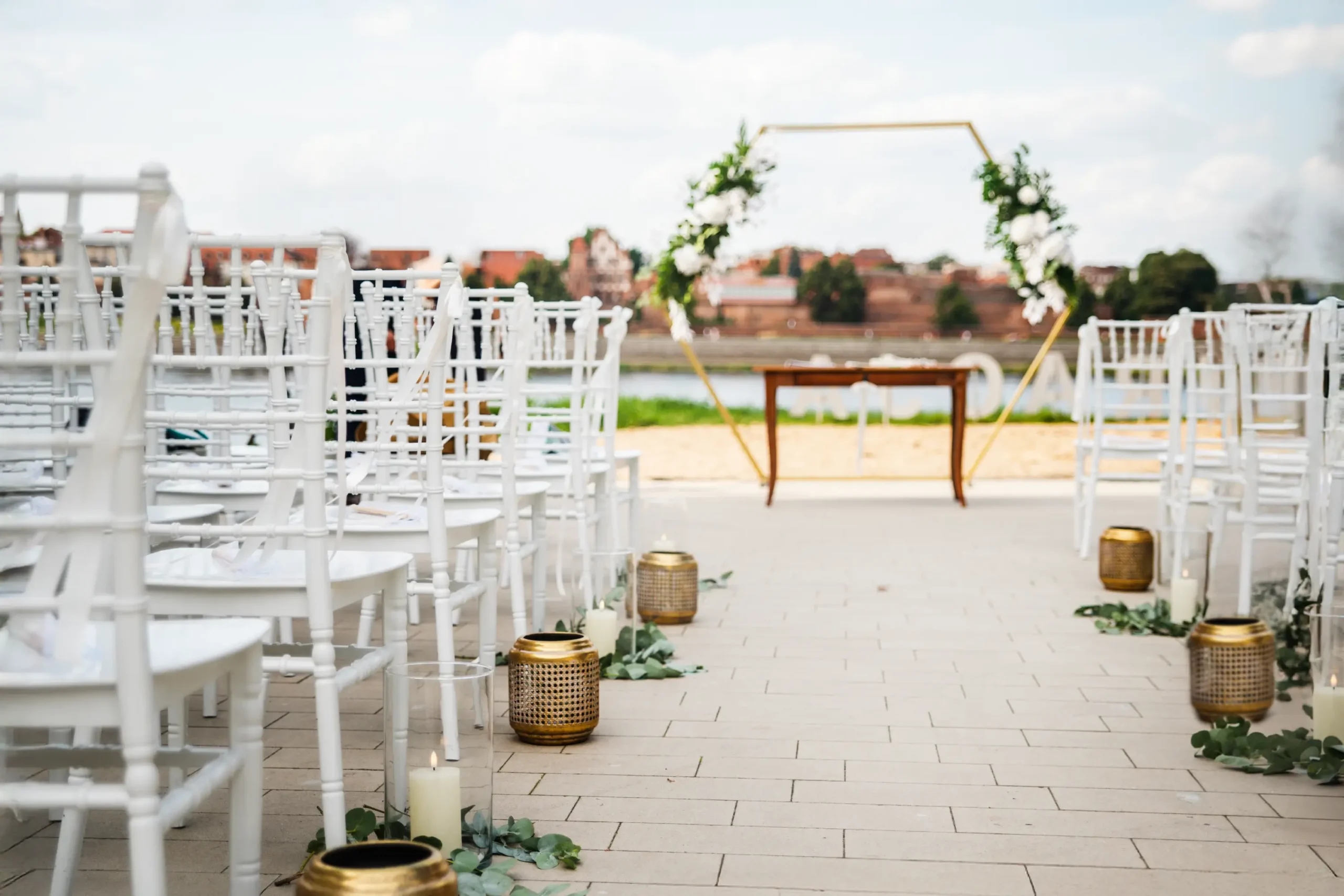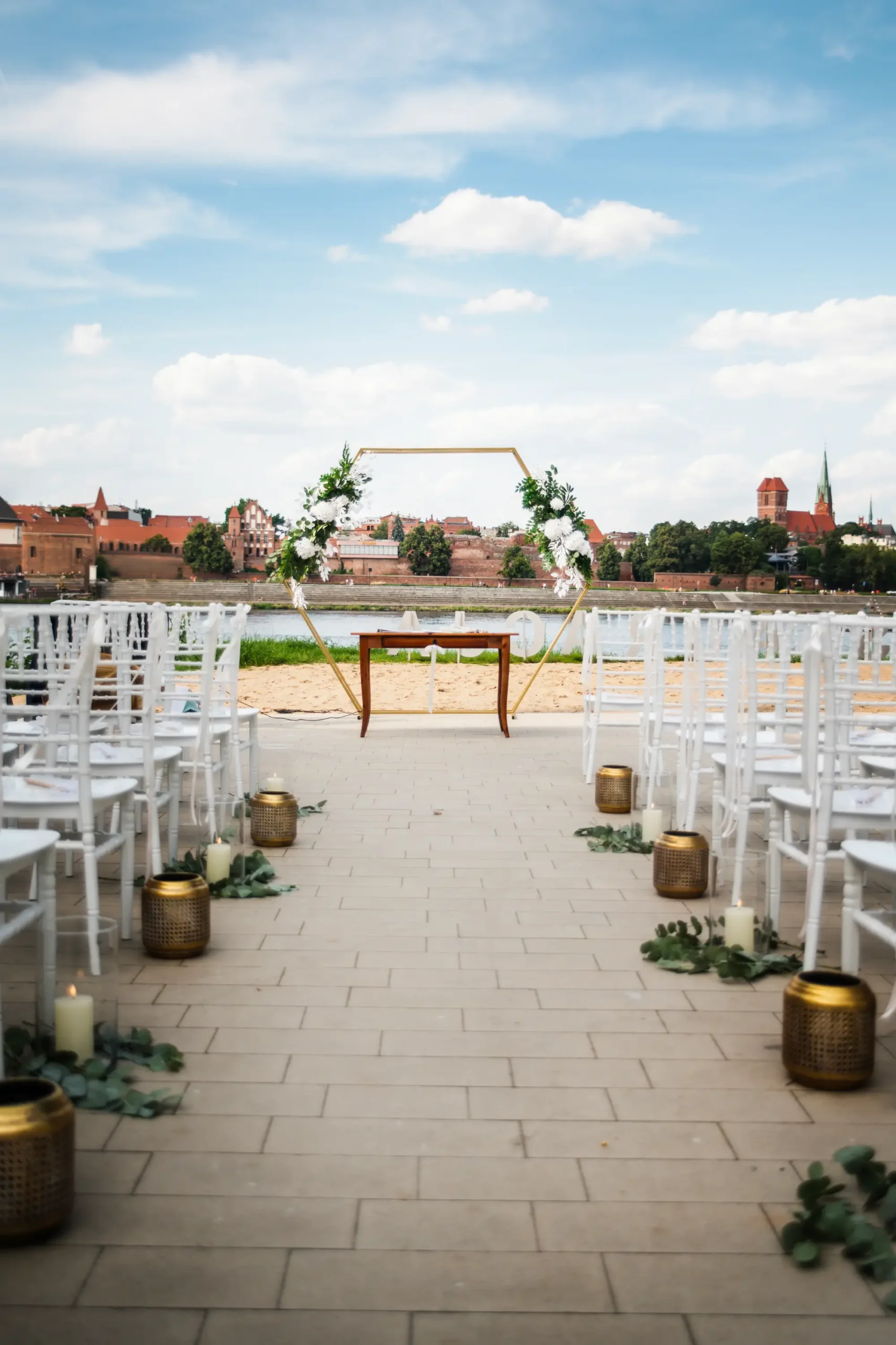 Delikatna i romantyczna oprawa sali weselnej w Restauracji Pałac Widokowy w Toruniu, stworzona z myślą o naszej Parze Młodej Natalii i Tonym. Ceremonia plenerowa oraz polsko-angielskie wesele, w którym spotkały się dwie kultury, piękny widok na toruńską starówkę oraz majestatyczna Wisła, tworząc niezapomnianą atmosferę tego wyjątkowego dnia.