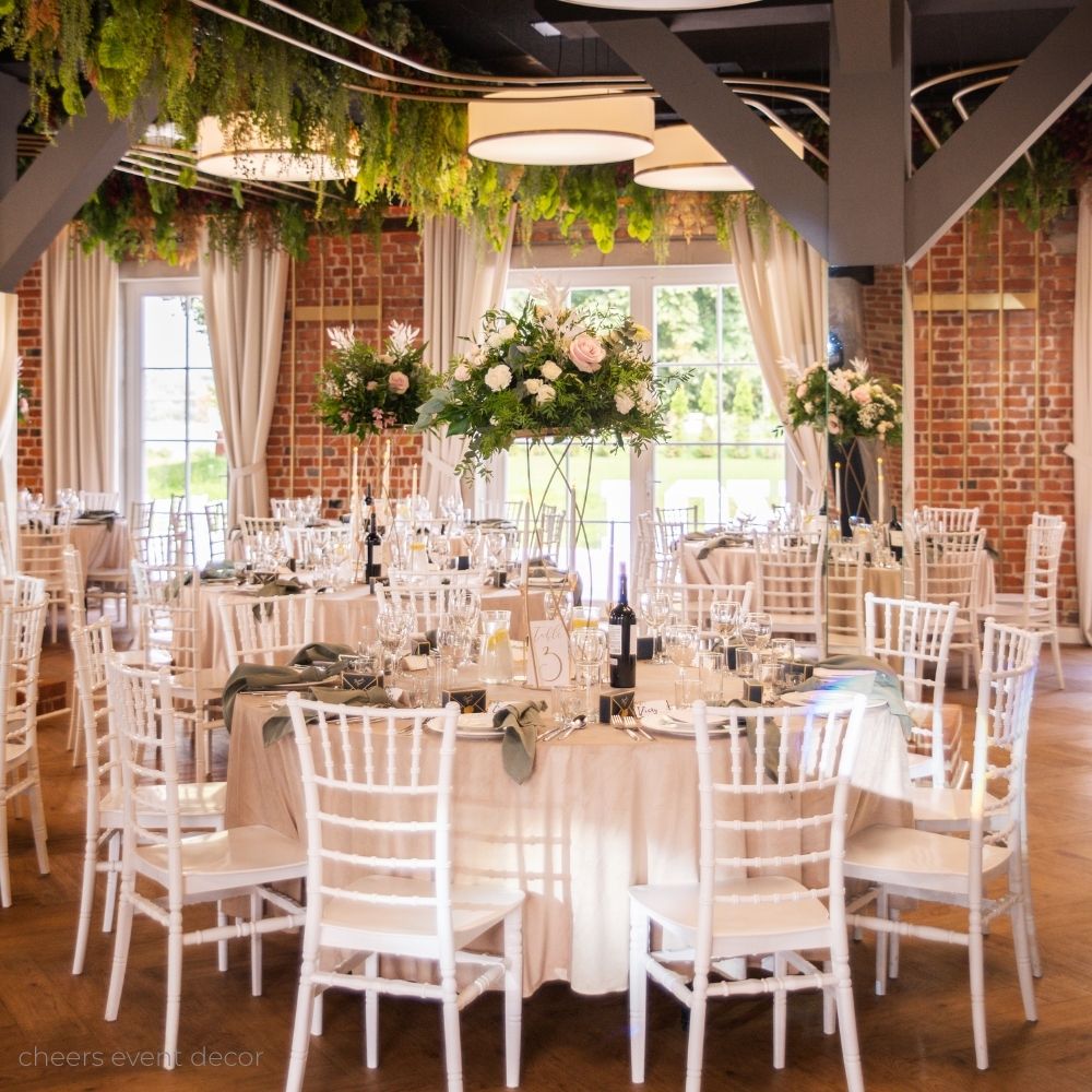 Złote stojaki na kwiaty stanowią doskonałe fundamenty w dekoracjach ślubnych, nadając się idealnie do ustawienia kompozycji kwiatowych na stołach weselnych oraz w kościele. Ich funkcjonalność nie kończy się tutaj, gdyż mogą również pełnić rolę eleganckich stojaków na świeczki lub lampiony. Złoty kolor doskonale harmonizuje z innymi elementami ozdób ślubnych, pasując do dowolnego koloru obrusów i gwarantując zgodność z różnymi odcieniami zieleni. Optymalna wysokość stojaków sprawia, że nie stanowią one przeszkody w swobodnej komunikacji między gośćmi. Bez względu na to, czy są umieszczone na stołach okrągłych czy prostokątnych, prezentują się wyjątkowo efektownie.
